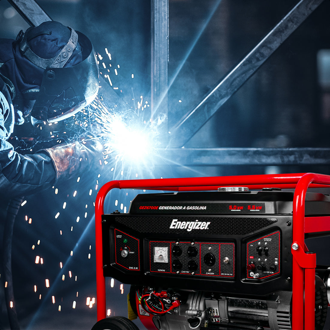 Generador portátil 5.5 kW 389CC 25L Regulador Voltaje Arr Man ENERGIZER